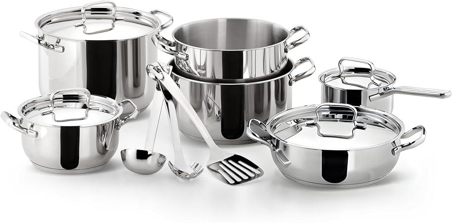 BATTERIA DI PENTOLE CON TERMOSTATO DA 18 PEZZI IN ACCIAIO INOX 18/10 CERTIFICATO